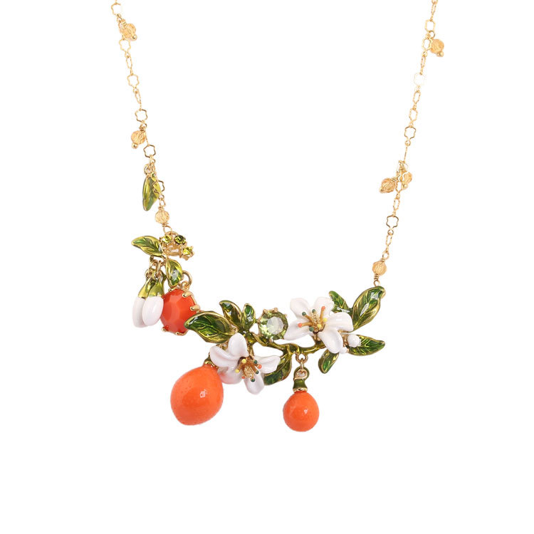 Orange Blossom Flower and Orange Enamel Collar Necklace Jewelry Gift