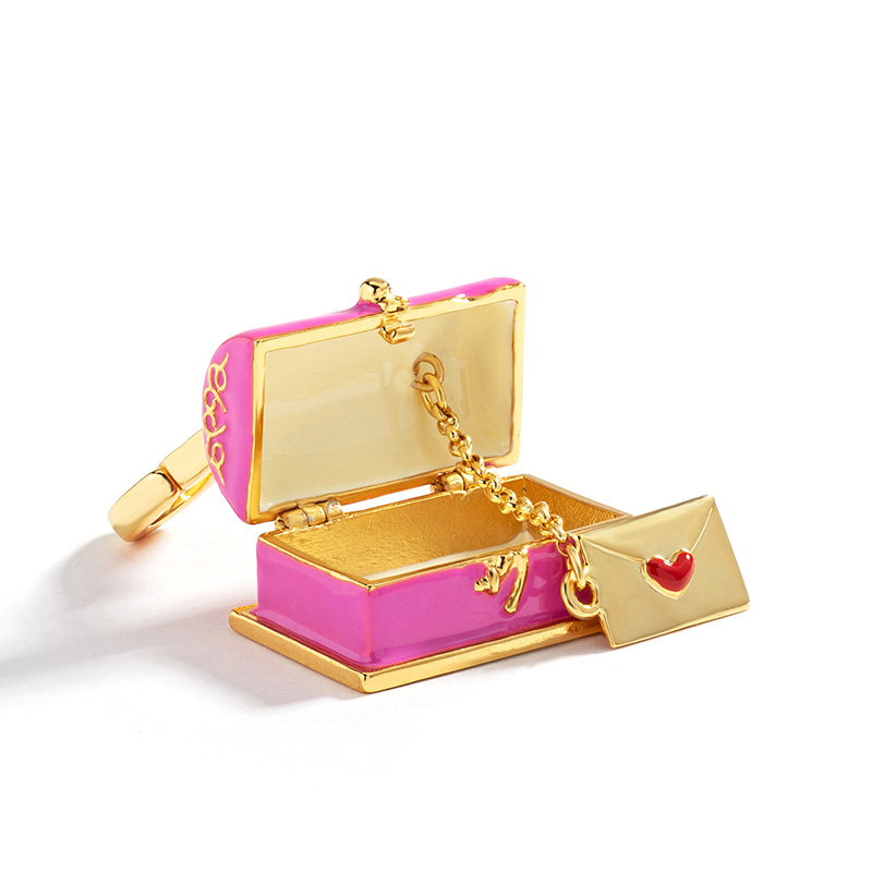 Pink Box Envelope With Heart Enamel Necklace Key Pendant With Chains