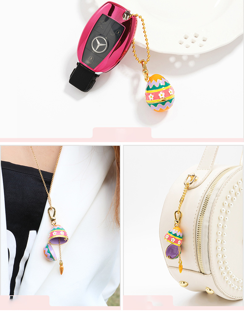 Yellow Chick Inside Easter Eggs Enamel Pendant