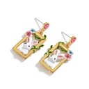 Cute Rabbit Bunny And Flower Crystal Enamel Dangle Stud Earrings Jewelry Gift