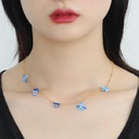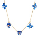 Pansy Flower Blue And Crystal Enamel Charm Necklace