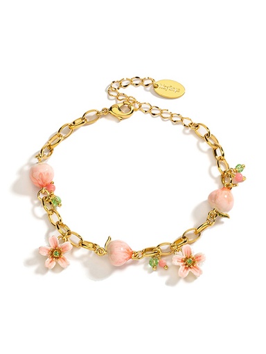 Pink Peach Blossom Flower Enamel Charm Bracelet