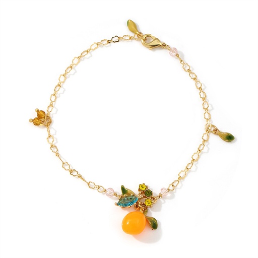 Gardenia Flower And Orange Citrus Enamel Charm Bracelet