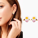 Daisy Flower And Bee Enamel Stud Earrings