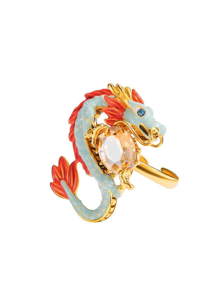 Dragon And Stone Enamel Adjustable Ring Jewelry Gift